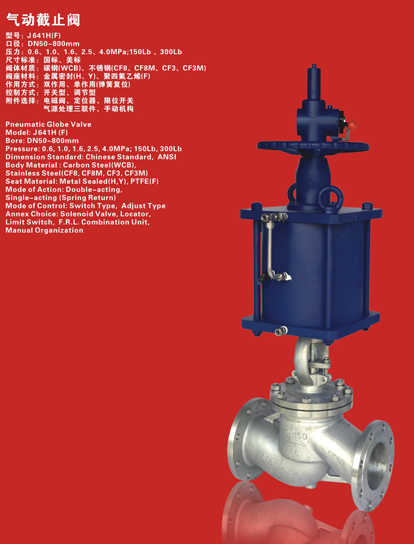 GB 标准气动法兰截止阀 J641H(W、F、Y)-PN10~40