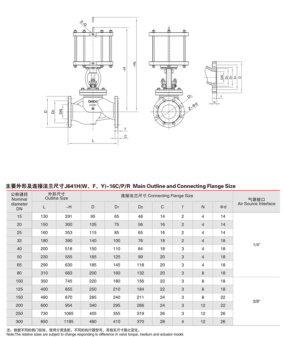 GB 标准气动法兰截止阀 J641H(W、F、Y)-PN10~40